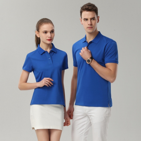 牛蓝提花翻领超爽网眼棉T恤衫ID1528-1