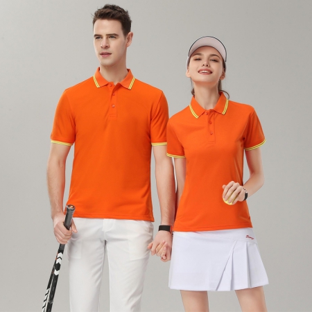 桔色提花领莱赛尔纤维棉Polo衫ID6120-4