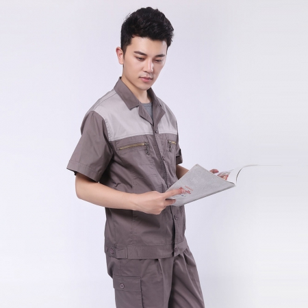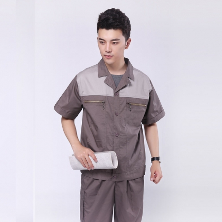 苏州鹰诺服装:棕灰短袖工作服AE581-DX