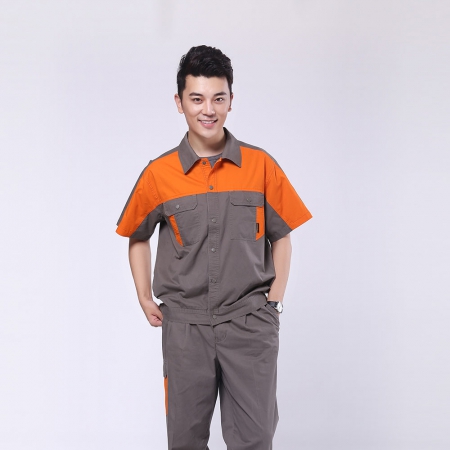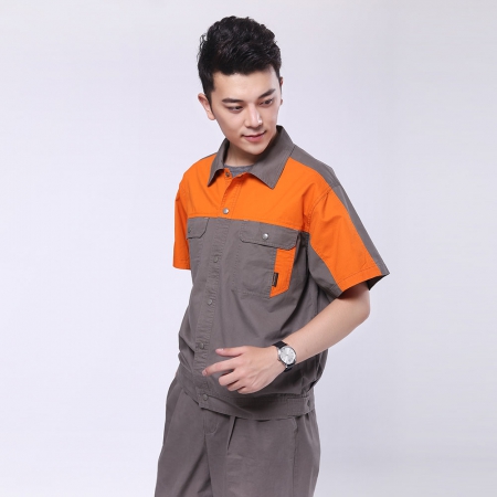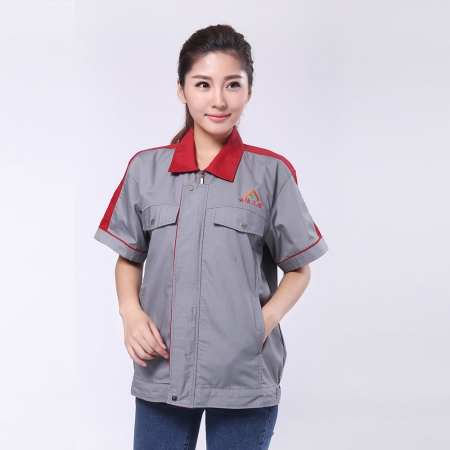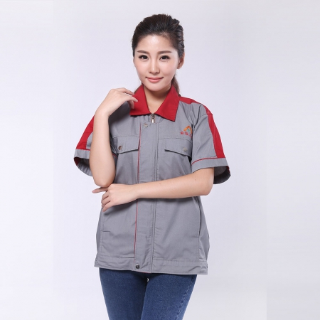 烟灰拼红色短袖工作服AE595-DX