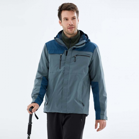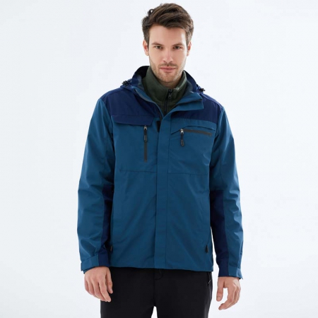 苏州鹰诺服装:藏青拼绿色冲锋衣CFY1902-14