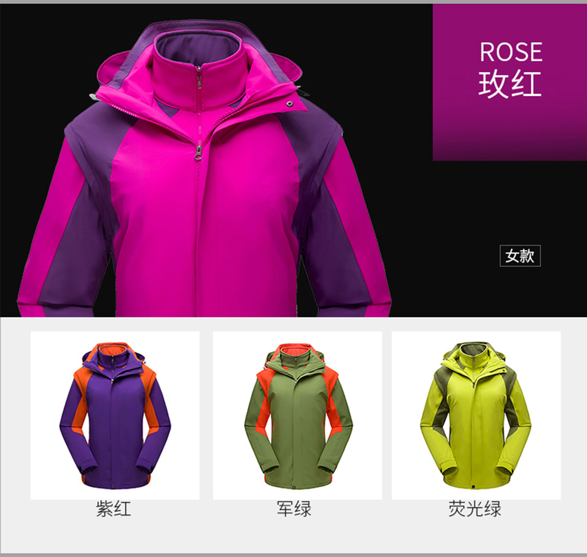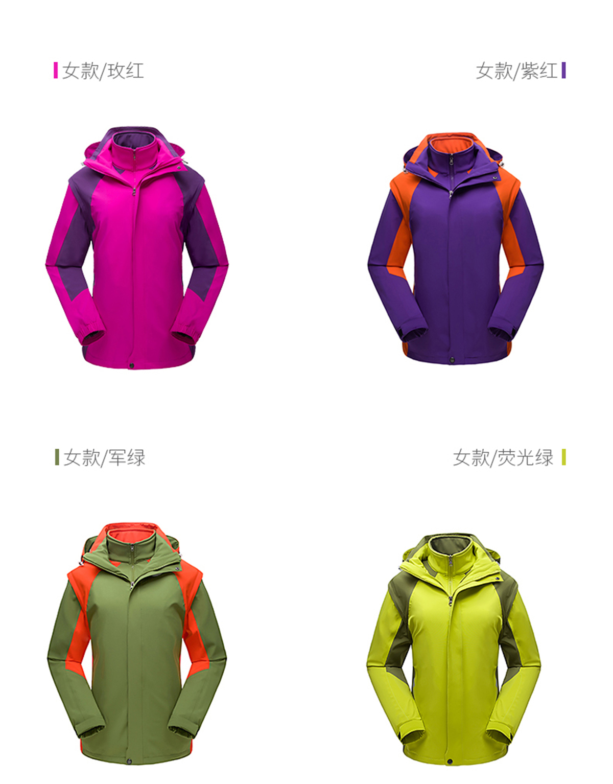 - 游客于 2018-11-24 14:59:47 发表男女款冲锋衣工厂款式CFDG1110